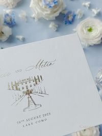 Personalized White Velvet Wedding Guest Book with Gold Foil Details | Villa Balbiano, Lake Como