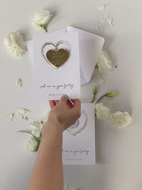 Gold Mirror Plexi hearts with magnets and real foil card. A perfect way to announce your wedding date in style with these beautiful GOLD Save the Date Magnets for your guest to admire. These wedding save the dates are personalised with the Bride and Grooms names, wedding date and location. You can choose from either of the designs.