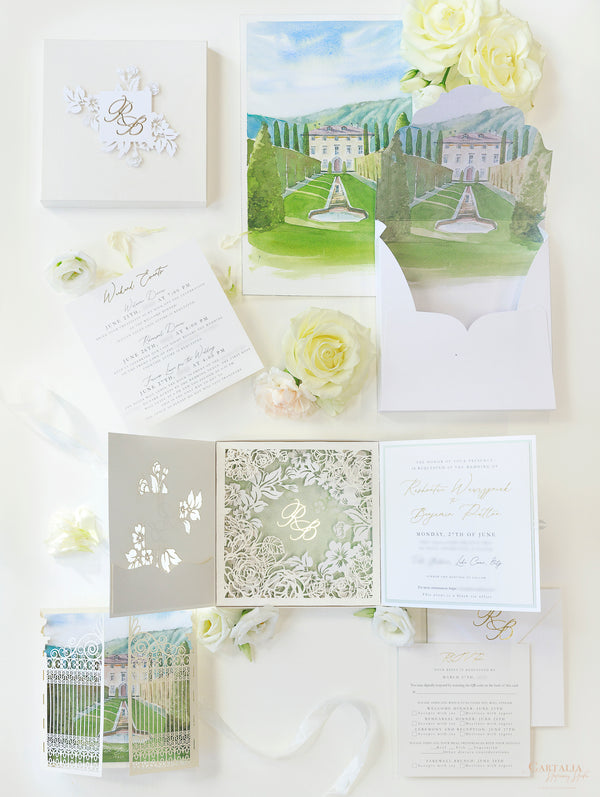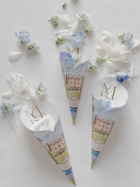 To enhance your Cone, we offer the option to purchase a Custom Watercolour of the venue here and a gold foil monogram add-on here.