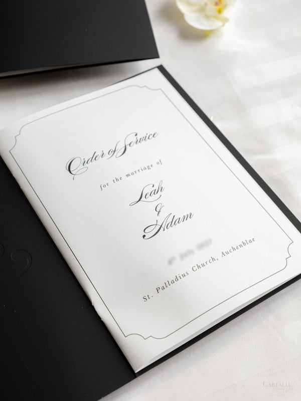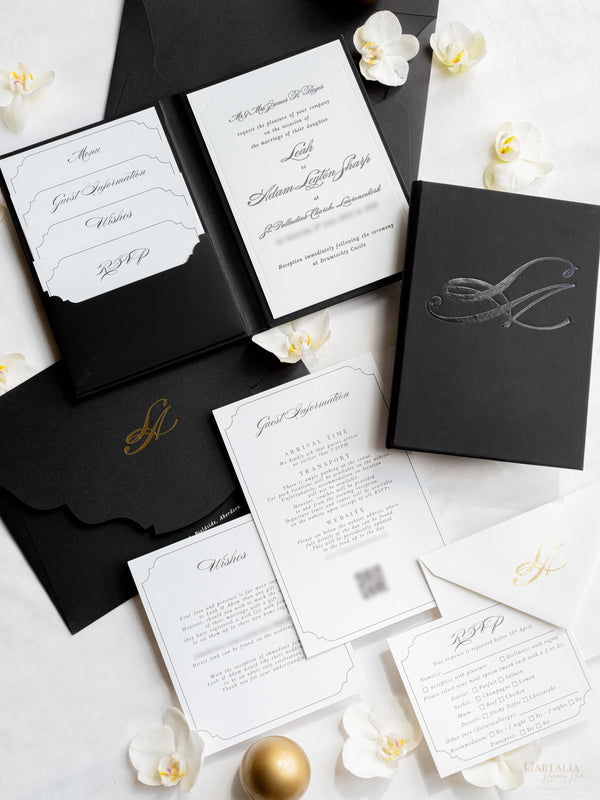 Black Hardcover Booklet Suite with Embossed Monogram & Letterpress | Bespoke Commission L&A