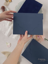 - Pocket-Style Invitation: The main invitation is elegantly nestled within a 285gsm navy matte dyed pocket, providing a sophisticated and organized structure.