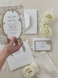 Elegant Laser Cut Roses Wedding Day Invitation in Old Gold