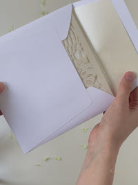 Beach Wedding Invitation | Sea Horses Laser cut Pull out folder Invitation in Cream and Champagne Metallic Colours