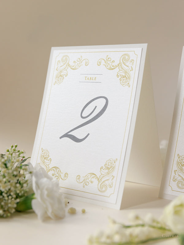 Classic Table Number & Name in Old gold and Champagne