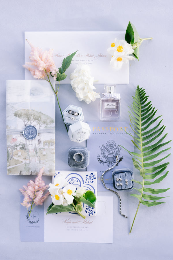 Passport Invitation Suite with Custom Vellum Watercolour Design | Villa Eva, Ravello, Amalfi Coast