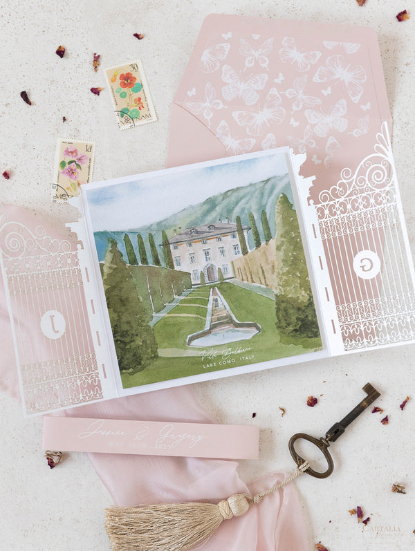 Villa Balbiano Wedding Invitation, Lake Como Venue Save the Date | Bespoke Commission J&G