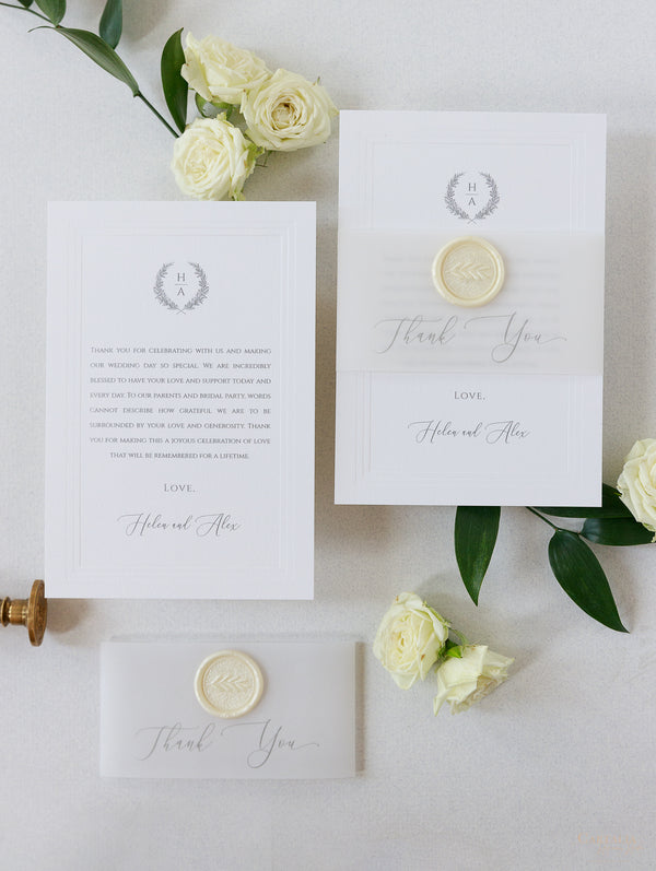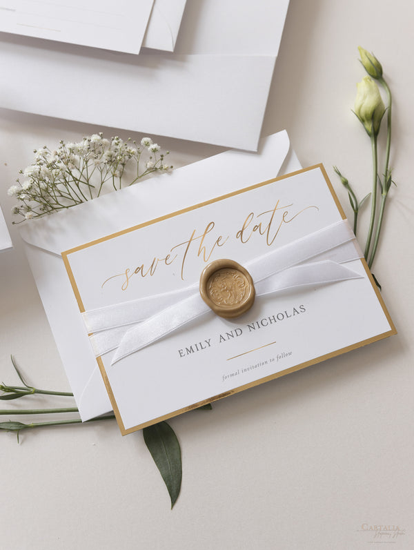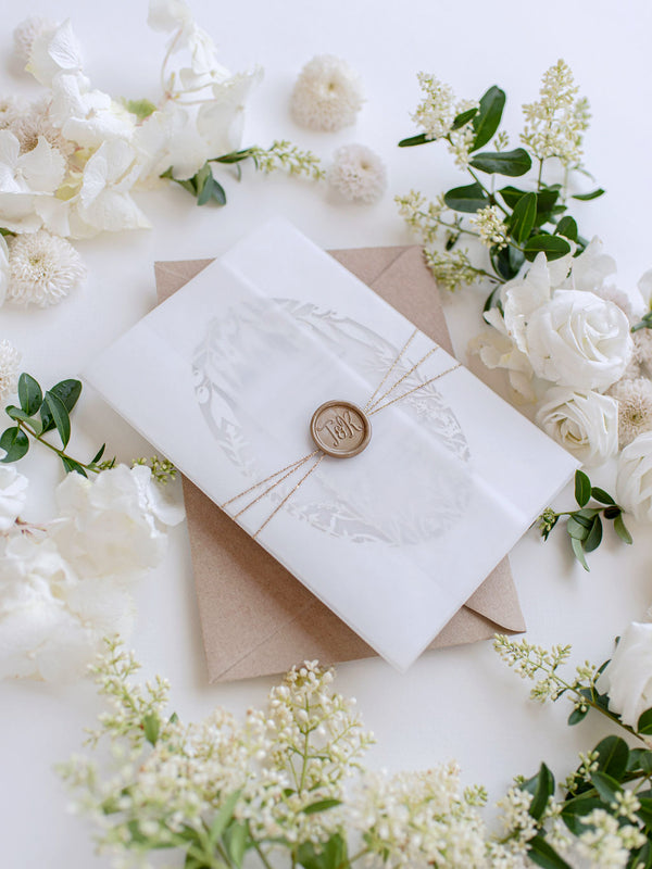 Luxury Vellum & Wax Seal Pocket fold Invitation with Gold Tie & Laser Cutting