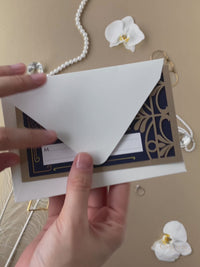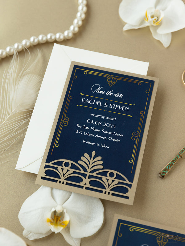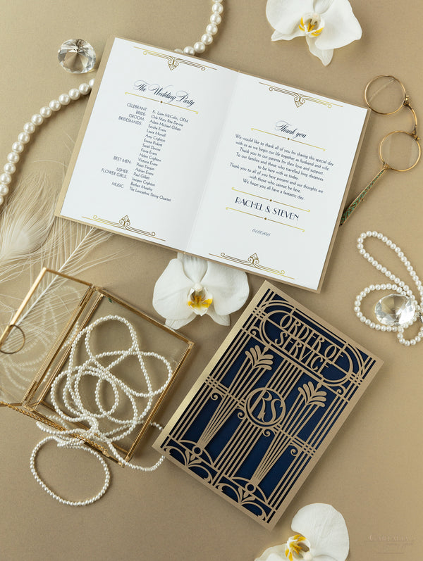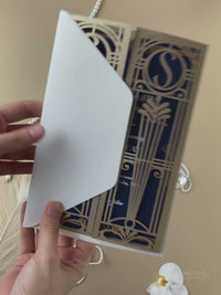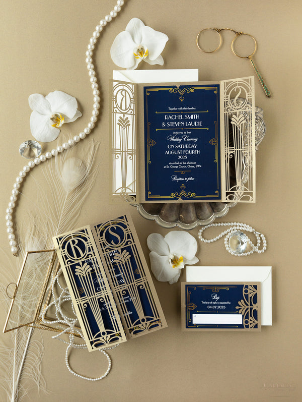 Golden Art Deco Great Gatsby Laser Cut Gatefold Wedding Day Invitation
