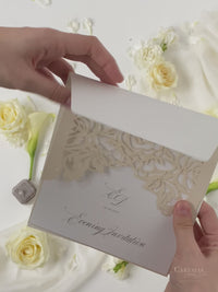 Invitación de noche cortada con láser de elegancia clásica en colores metálicos crema y champán