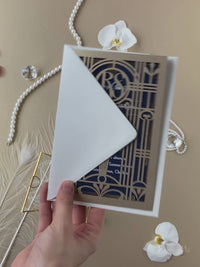 Invitación de noche de boda plegable con corte láser del Gran Gatsby Art Déco dorado