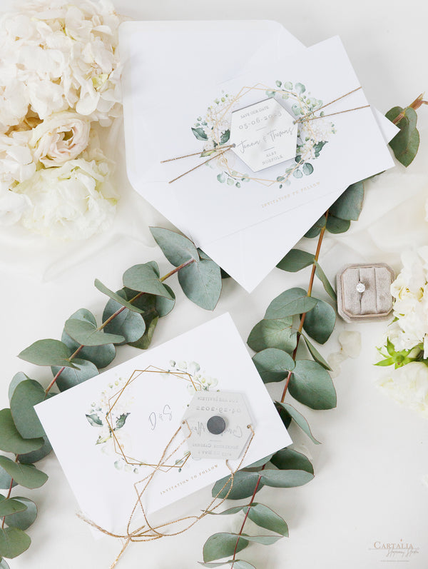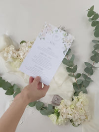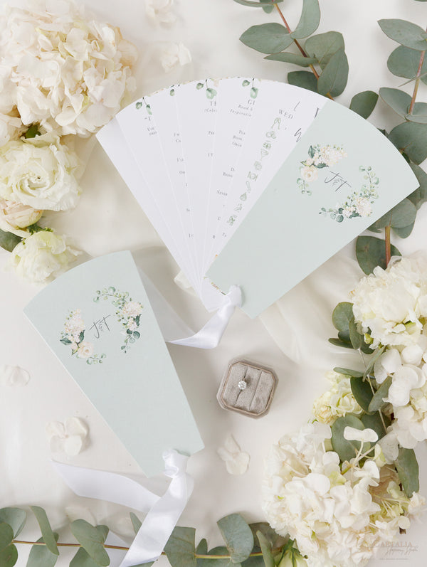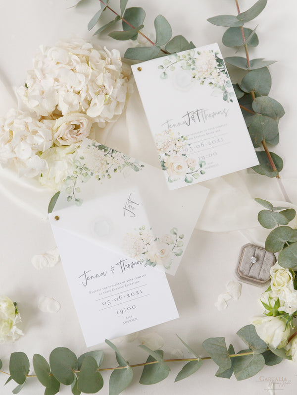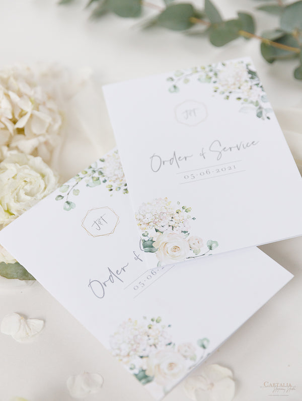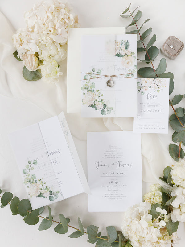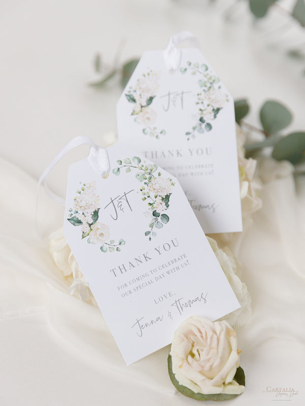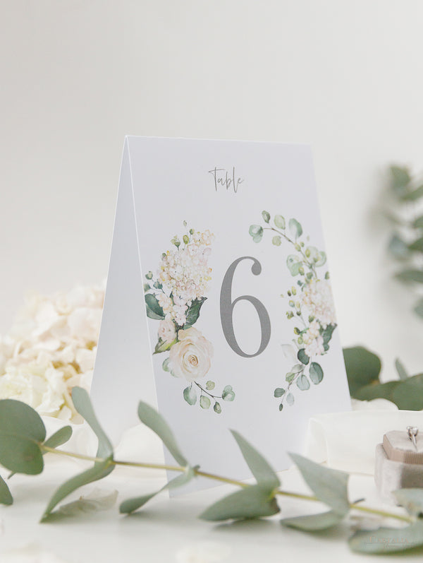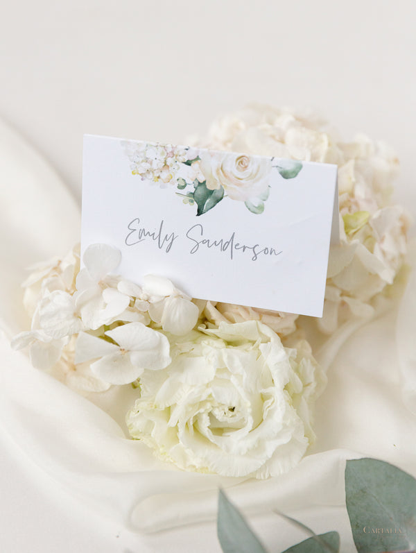 Tarjetas de menú que combinan perfectamente con nuestra colección White Hydrangea