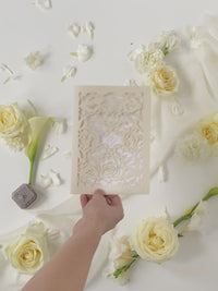 Clásico Elegancia Corte Laser Crema y Champán Colores Metálicos Orden de Servicio / Menú
