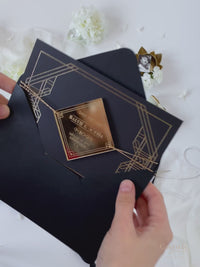 Art déco Great Gatsby Save the Date Gold Mirror Geometric Plexi Magnet