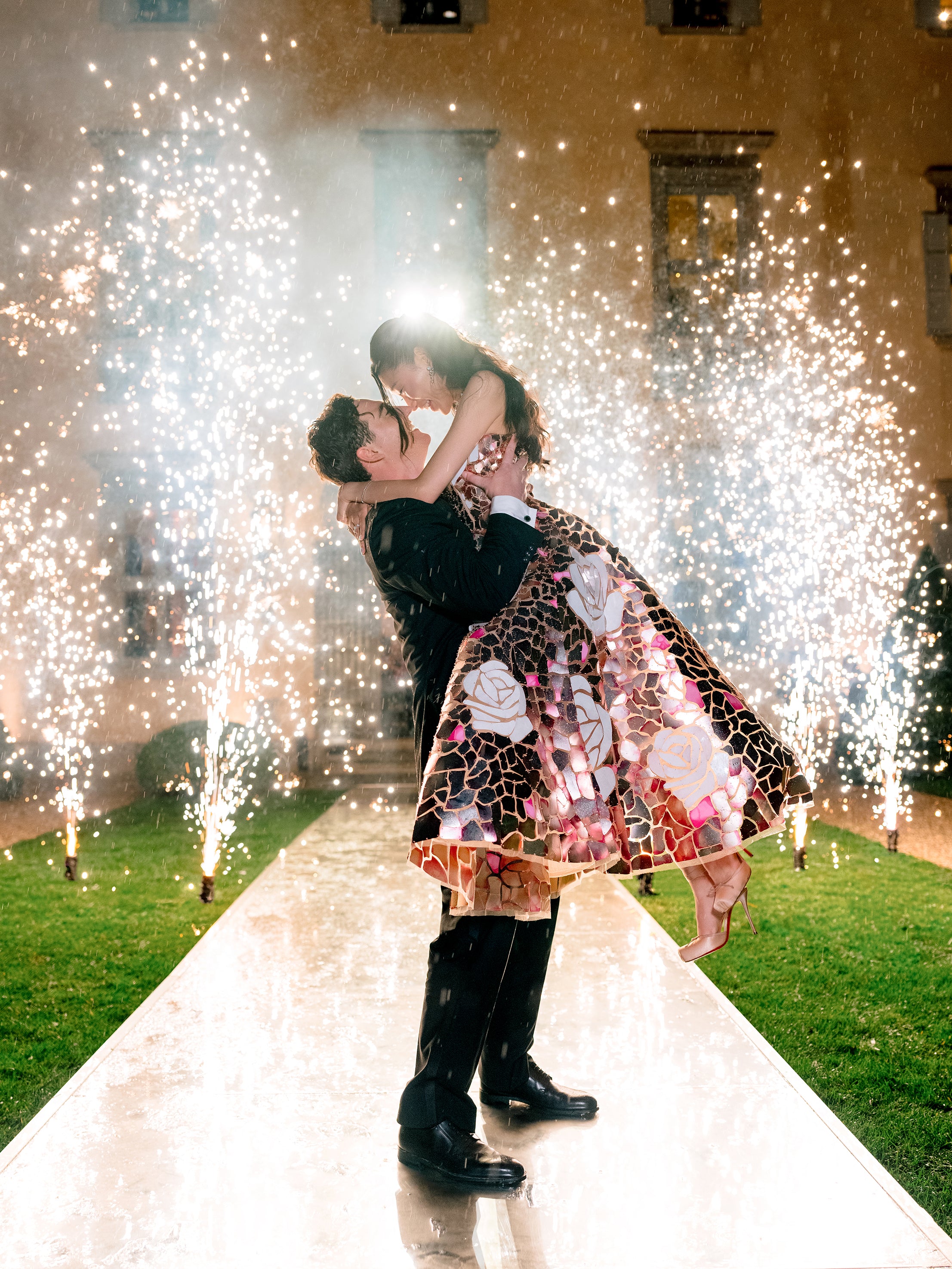 Menu bar su misura con monogramma dorato | Matrimonio Lago di Como Villa Balbiano