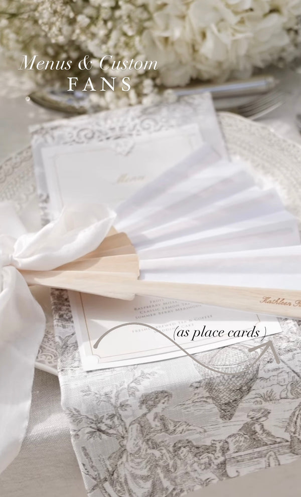 Con questo lussuoso ventaglio con monogramma legato con un lungo nastro di raso, aggiungi un tocco unico alla tua cerimonia di nozze con questi ventagli del programma di nozze. Sono perfetti per abbellire il tuo evento e allo stesso tempo offrire comfort agli ospiti durante una cerimonia all'aperto.