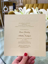 - Iniziali degli sposi in rilievo sulla parte superiore dell'invito: £ 75,00