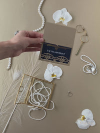 Lussuoso segnaposto abbinato agli inviti di nozze in stile art deco.