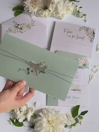 Wedding Hydrangea Folder Wallet in Sage Green, Passport Invitation & Mirror Plane Tag